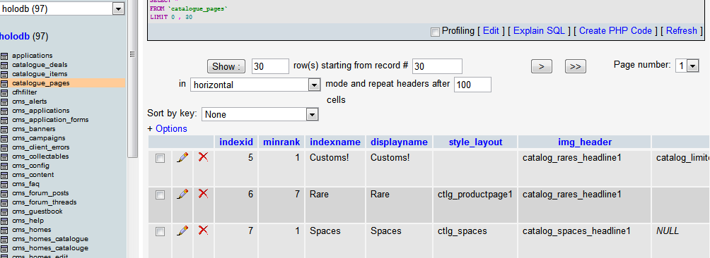 13. Danach klicken Sie catalogue_items Gehe zur letzten Seite und Wiederholen Sie Schritt 10.